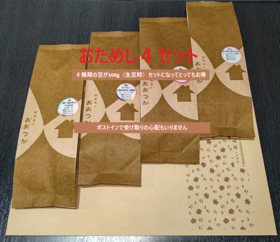 発送用梱包の変更についてネット販売開始より採用しておりました『発送用ボックス+ビニールカバー』の梱包をコスト削減と環境負荷低減のため『当店オリジナルの封筒』へと変更することといたしました。既存の梱包資材がなくなり次第の順次切り替えいたします。(4月または5月予定)様々な資材が値上がりする中で製品価格を維持するため発送テストを実施した結果の変更となります。皆様のご理解のほどお願い申し上げます。なお、おためし4セットの内容に関しましては今まで同様で変更はございません。 おためし4セット 【4月分】 販売価格 2,600円(税込み) 会員価格 2,600円(税込み) 通常価格 2,600円(税込み) 在庫 商品コード OT404 JANコード 豆・粉 豆 中挽き 数量 1 2 3 4 5 6 7 8 9 10 販売期間外のため注文いただけません。 ツイートする シェアする カテゴリー おためし4セット メーカー 珈琲豆のおおつか ブランド 珈琲豆のおおつか キャンペーン 『今月の珈琲豆』『おためし4セット』『サービスコーヒー豆』 販売期間 2026/03/23~2026/04/23 19:00 RECOMMENDEDおすすめアイテム おためし4セット 【3月分】 2,600円(税込み) DB プレミアムB、エメマンB、ブルマンB、コーヒーゼリー(各6個)ギフト 5,380円(税込み) 在庫切れ DB 選べるブレンド2種類(各6個・合計12個)セット 2,700円(税込み) DB 選べるブレンド・コーヒーゼリー(各6個・合計12個)セット 2,760円(税込み) 在庫切れ ご当地ブレンド(津田沼・習志野・船橋)各250g(生豆時)ギフト 6,030円(税込み) QCB 津田沼、習志野、船橋、やさしさ【カフェインレス】(各6個)ギフト 4,930円(税込み) QCB 津田沼、習志野、船橋、コロンビア(各6個)ギフト 4,930円(税込み) 贅沢ギフト 5,670円(税込み) 夏ギフト 【ライト】 2,820円(税込み) 在庫切れ QCB 津田沼、習志野、船橋、やさしさ、コロンビア(各3個)ギフト 3,300円(税込み) QCB 選べる2種類 【津田沼・習志野・船橋】(各6個・合計12個)セット 2,460円(税込み) QCB よりどり(津田沼、習志野、船橋各2個)・コロンビア スイート&フラワーズ(6個)セット 2,650円(税込み) 夏ギフト 【プレミアムプラス】 5,990円(税込み) 在庫切れ 夏ギフト 【プレミアム】 4,770円(税込み) 在庫切れ 夏ギフト 【スタンダード】 3,650円(税込み) 在庫切れ CAMPAIGNキャンペーン カフェインが気になる、でもコーヒーを楽しみたい! コーヒーで持続可能な社会実現に貢献しよう! 冬でもやっぱりアイスドリンク!! 『今月の珈琲豆』『おためし4セット』『サービスコーヒー豆』 CATEGORYカテゴリー 自家焙煎珈琲豆 ブレンド 中米 南米 アフリカ アジア・太平洋 カフェインレス【デカフェ】 ドリップバッグ クイックコーヒーバッグ アイスコーヒー【水出し・リキッド】 おためし4セット ギフトセット 夏ギフト フィルター・器具関連 カスカラ関連商品 お菓子ほか CALENDARカレンダー 2026年03月 日 月 火 水 木 金 土 1 2 3 4 5 6 7 8 9 10 11 12 13 14 15 16 17 18 19 20 21 22 23 24 25 26 27 28 29 30 31 2026年04月 日 月 火 水 木 金 土 1 2 3 4 5 6 7 8 9 10 11 12 13 14 15 16 17 18 19 20 21 22 23 24 25 26 27 28 29 30 2026年05月 日 月 火 水 木 金 土 1 2 3 4 5 6 7 8 9 10 11 12 13 14 15 16 17 18 19 20 21 22 23 24 25 26 27 28 29 30 31 休業日 おためし4セット発売日